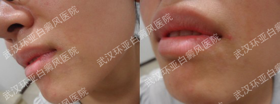 3、黑色素缺失度检测:唇部,嘴角黑色素脱失80%。